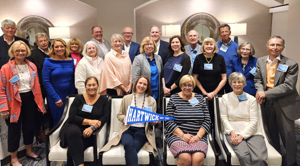 The tour featured three stops, with gatherings in Sarasota, Naples and Tequesta hosted by proud Hartwick alumni and/or longstanding supporters. Each event drew between 15 and 25 attendees and was hosted by former Trustee Kathi (Fragola) Hochberg ’73 and Gordon Hochberg (Sarasota, Jan. 29); former Trustee Dick ’62, PM ’20 and Carol Clapp (Naples, Jan. 30); and Trustee Emeritus Brian H’02, PM ’11 and Josie Wright (Tequesta, Feb. 1).