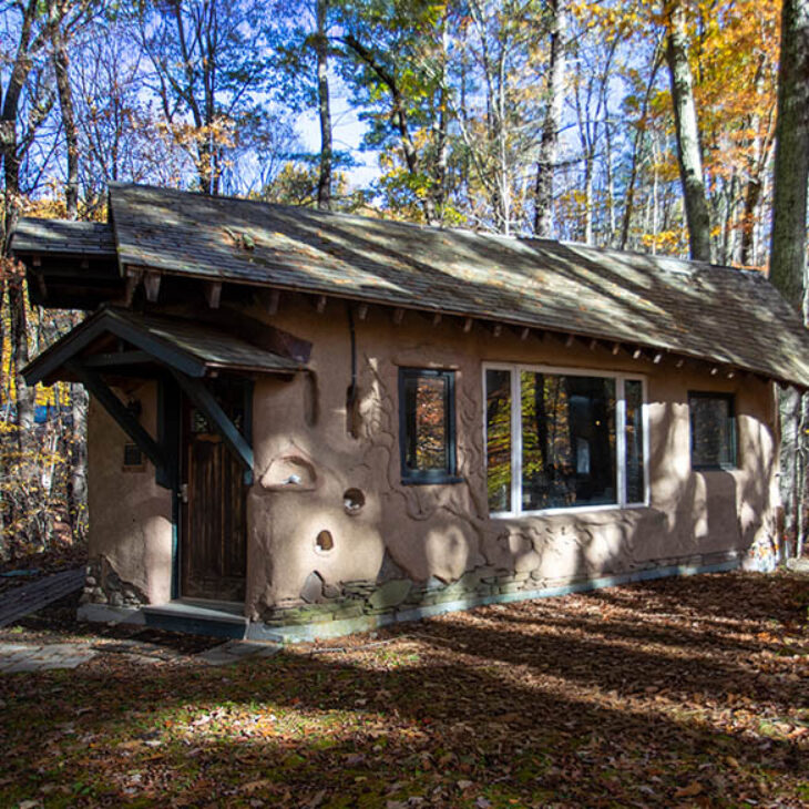 The Strawbale and Cob Houses at Pine Lake were designed and constructed by Hartwick students using earthen building material made from sand, clay, and straw. Materials were mixed and hand-applied to form thick walls. Exteriors were covered with a natural earthen finish plaster made onsite. Local, natural, and salvaged materials were used wherever possible. When new building materials were purchased, a special emphasis was placed on supporting locally-owned, independent businesses.