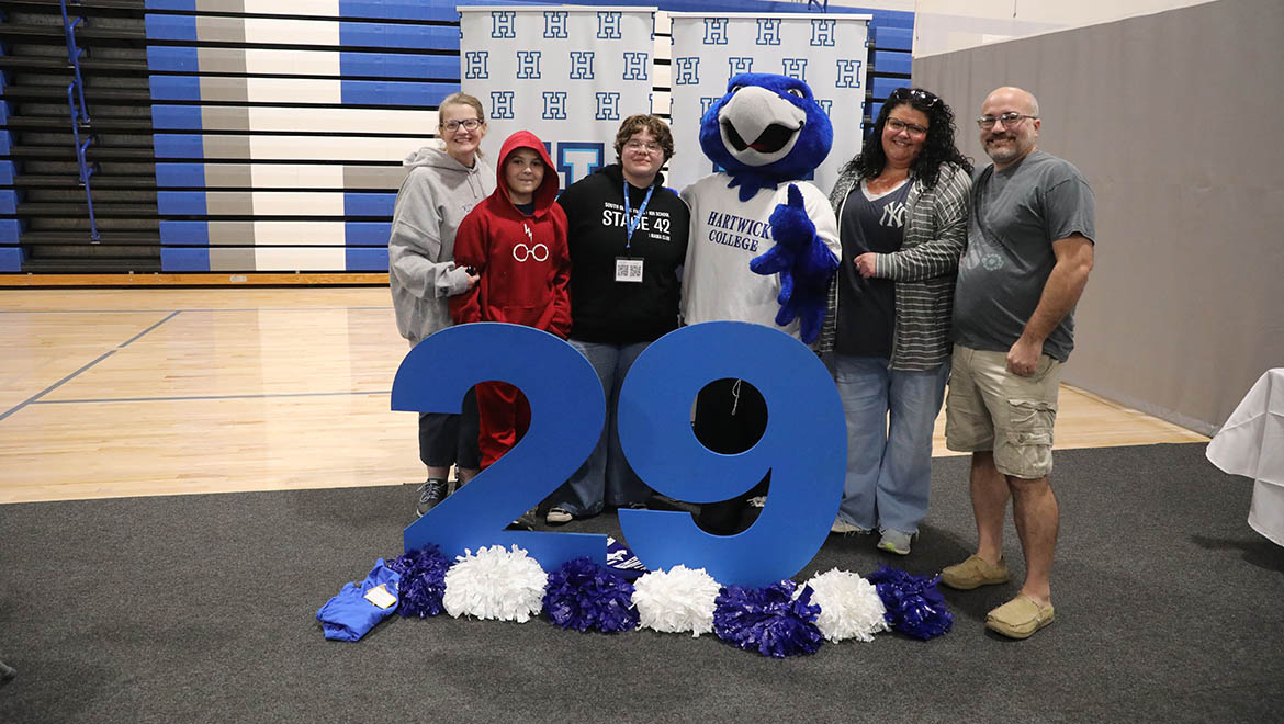 There are so many great and time-honored traditions that come with being part of the Hartwick community: Matriculation and Opening Convocation, your first formal ceremony as a Hartwick student. After you join in for your class photo, you'll pick up your class shirt. You might even snag that coveted spot next to our mascot, Swoop!