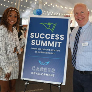 Office of Career Development. Students heard from a variety of guest speakers, including President Darren Reisberg, Dr. Cheryl Johnson, and Cierra Barkley ’23, and learned about networking, professionalism, etiquette, and self-promotion.
